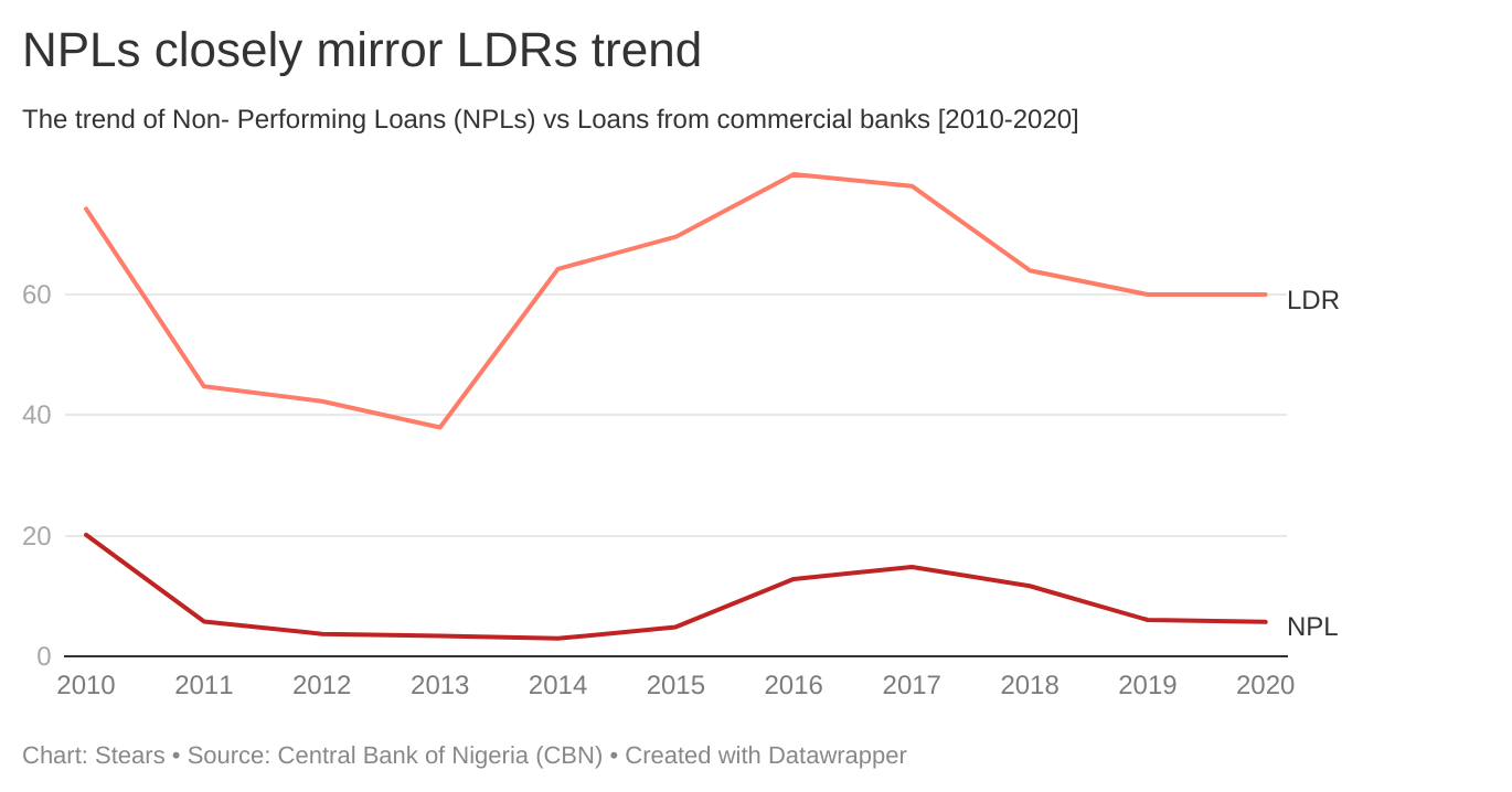 Several financial market analysts who spoke with Stears on this issue explained that banks see the CBN holding on to their funds as a safer bet than lending out money that could become bad loans. These banks' recent experience makes them reticent to lend aggressively, as they are still traumatised from a period of high non-performing loans (NPL) in the country. For instance, when LDRs were over 70% in 2010, the ratio of non-performing loans to total industry loans rose as high as 20% in the same year, much higher than the CBN threshold of 5%.